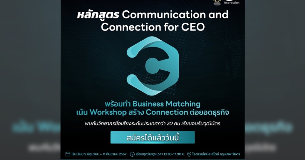 ต่อยอดธุรกิจ สร้าง Connection ด้วยหลักสูตร 3C - Communication and Connection for CEO หลักสูตรนี้เหมาะกับ ผู้บริหารธุรกิจ และผู้นำองค์กรภาครัฐและรัฐวิสาหกิจ ในการอบรมครั้งนี้ จะได้พบกับ Speakers ชั้นนำระดับประเทศ ได้ทำ Business Matching ได้สร้าง Connection เพื่อต่อยอดธุรกิจ และได้รับวุฒิบัตรจบหลักสูตร