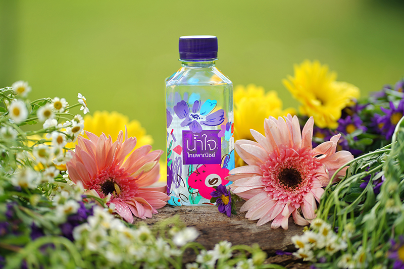 ขวดน้ำดื่ม “น้ำใจไทยพาณิชย์ rPET” โฉมใหม่ได้รับการออกแบบภายใต้แนวคิด “Sustainable Bloom” ความยั่งยืนที่เบ่งบานสู่อนาคต นำเสนอในลวดลายดอกไม้หลากสีรวม 17 สี อันสื่อถึง 17 เป้าหมายแห่งการพัฒนาที่ยั่งยืน ทั้งยังเป็นตัวแทนแสดงเจตจำนงของธนาคารที่จะส่งมอบความยั่งยืนให้แก่สังคมและดูแลสิ่งแวดล้อมให้กับโลกใบนี้ ทั้งนี้ การใช้ขวด rPET สามารถลดปริมาณขยะฝังกลบและขยะที่ถูกทิ้งลงทะเล ลดมลพิษสู่สิ่งแวดล้อม ลดการใช้ทรัพยากรธรรมชาติ และส่งเสริมเศรษฐกิจหมุนเวียนอย่างเป็นรูปธรรม ขวดน้ำดื่ม “น้ำใจไทยพาณิชย์ rPET” ขนาดบรรจุ 320 มิลลิลิตร จำนวน 1.3 ล้านขวด นับเป็นการรีไซเคิลพลาสติกกลับมาผลิตเป็นขวดบรรจุภัณฑ์ใหม่ได้อย่างไม่รู้จบ แม้จะดูเป็นจำนวนไม่มากเมื่อเทียบกับขวดน้ำในอุตสาหกรรมอื่นๆ แต่การลดปริมาณพลาสติกใหม่จำนวน 1.3 ล้านขวดเทียบเท่ากับการดูดซับก๊าซคาร์บอนไดออกไซด์จากต้นไม้ 2,200 ต้นในเวลา 1 ปี และคิดเป็นการปล่อยปริมาณก๊าซเรือนกระจกน้อยกว่าการใช้เม็ดพลาสติกผลิตขวดน้ำแบบเดิมถึง 60%