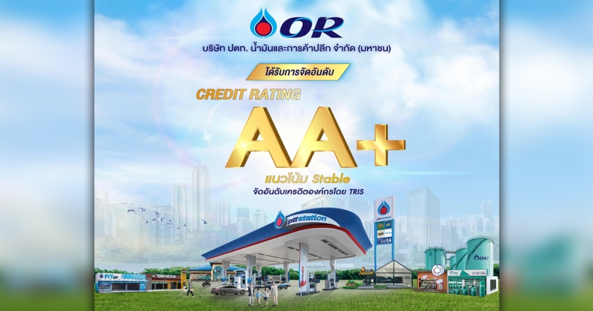 OR ตอกย้ำความเป็นผู้นำในธุรกิจค้าปลีกน้ำมันประเทศไทย โดยได้รับการจัดอันดับเครดิตองค์กร (Company Rating) ที่ระดับ “AA+” จากทริสเรทติ้ง (TRIS) ด้วยแนวโน้มอันดับเครดิตคงที่ (Stable) ต่อเนื่องเป็นปีที่ 2 สะท้อนความสำเร็จด้วยผลการดำเนินงานที่โดดเด่น และฐานะทางการเงินที่แข็งแกร่ง