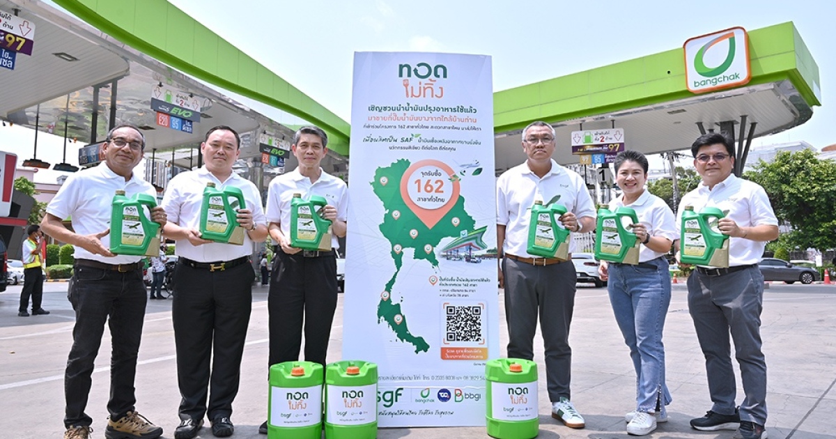 บางจากฯ ขยายโครงการ “ทอดไม่ทิ้ง” ส่งต่อสุขภาพที่ดี ร่วมสร้างโลกที่ยั่งยืน เพิ่มจุดรับซื้อน้ำมันปรุงอาหารใช้แล้วในสถานีบริการเพื่อผลิต SAF เป็น 162 แห่งทั่วประเทศ กลางเดือนเมษายนนี้