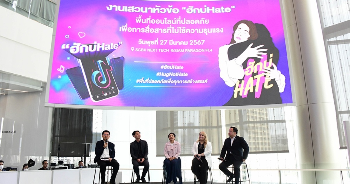วันที่ 27 มีนาคม 2567 เวลา 13.00 น. คณะกรรมการสิทธิมนุษยชนแห่งชาติ (กสม.) ร่วมกับกองทุนพัฒนาสื่อปลอดภัยและสร้างสรรค์ มูลนิธิฟรีดริช เนามัน ประเทศไทย TikTok Thailand บริษัท เทลสกอร์ จำกัด COFACT ประเทศไทย มูลนิธิอินเทอร์เน็ตร่วมพัฒนาไทย และเครือข่ายเสริมสร้างอินเทอร์เน็ตปลอดภัย ประเทศไทย จัดเสวนาหัวข้อ “ฮักบ่Hate พื้นที่ออนไลน์ที่ปลอดภัยเพื่อการสื่อสารที่ไม่ใช้ความรุนแรง” และพิธีมอบรางวัลการประกวดคลิปสั้น TikTok แคมเปญ “ฮักบ่Hate” ภายใต้โครงการรณรงค์เสริมสร้างความตระหนักรู้เรื่องการสื่อสารที่ไม่สร้างความเกลียดชัง (Hate Speech) ณ SCBX Next Tech ชั้น 4 สยามพารากอน และผ่านระบบออนไลน์