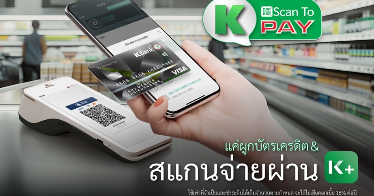 ธนาคารกสิกรไทย ตอกย้ำผู้นำด้านนวัตกรรมการชำระเงิน ชูกลยุทธ์บัตรเครดิตกสิกรไทยสู่การใช้จ่ายผ่านสมาร์ทโฟนเต็มรูปแบบ เปิดใช้ฟีเจอร์ “K Scan to Pay สแกนทั่ว เปย์ถึง” สแกนจ่ายคิวอาร์โค้ดบัตรเครดิตบน K PLUS โดยมีร้านค้ารับชำระได้แล้วกว่า 300,000 ร้านค้า ครอบคลุมแบรนด์ดังและร้านค้าด้านไลฟ์สไตล์ กิน ช้อปปิ้ง แฟชั่น ไอที และสุขภาพ จัดโปรโมชันพิเศษเมื่อใช้ K Scan to Pay รับคะแนน K Point เพิ่มสูงสุด 15 เท่า* ตั้งแต่วันที่ 28 มีนาคม 2567 - 31 พฤษภาคม 2567 ตั้งเป้าภายในสิ้นปีนี้ มีลูกค้าใช้จ่ายบัตรเครดิตกสิกรไทยผ่าน K Scan-to-Pay กว่า 5 แสนราย และมียอดใช้จ่ายรวมกว่า 5,000 ล้านบาท