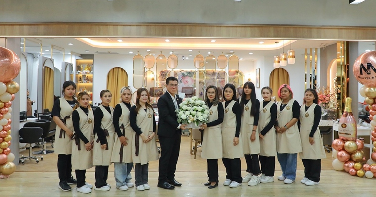 นายวิศาล สิปิยารักษ์ (ที่ 6 จากซ้าย) กรรมการผู้จัดการศูนย์การค้าเอ็ม บี เค เซ็นเตอร์ บริษัท เอ็ม บี เค จำกัด (มหาชน) นำทีมร้านค้าสัมพันธ์มอบกระเช้าดอกไม้แสดงความยินดีแก่ นางโสภา จันทร์แสงดี (ที่ 7 จากซ้าย) เจ้าของร้านทำเล็บครบวงจร โดยช่างมากฝีมือและประสบการณ์ N&N Nail Spa&Salon By Ning เนื่องในโอกาสเปิดตัวสาขาใหม่ ณ ชั้น 6 โซน B ศูนย์การค้าเอ็ม บี เค เซ็นเตอร์ เมื่อเร็ว ๆ นี้