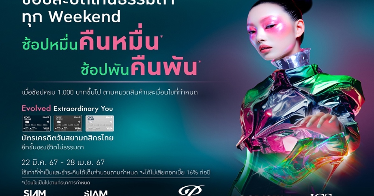 บัตรเครดิตวันสยามกสิกรไทย จัดแคมเปญช้อปหมื่นคืนหมื่น ช้อปพันคืนพัน ทุกศุกร์-เสาร์-อาทิตย์ ตั้งแต่ 5 เม.ย. 67 – 28 เม.ย. 67