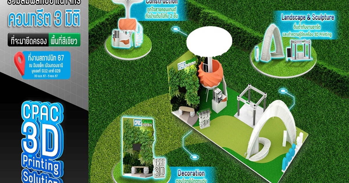 “CPAC Green Solution” ชวนตะลุยอาณาจักร 3D Printing (คอนกรีต 3 มิติ) สุดว๊าว! ในงาน "สถาปนิก'67: Architect Expo 2024" ที่ ชาเลนเจอร์ ฮอลล์ อิมแพ็ค เมืองทองธานี เริ่ม 30 เม.ย.- 5 พ.ค.นี้