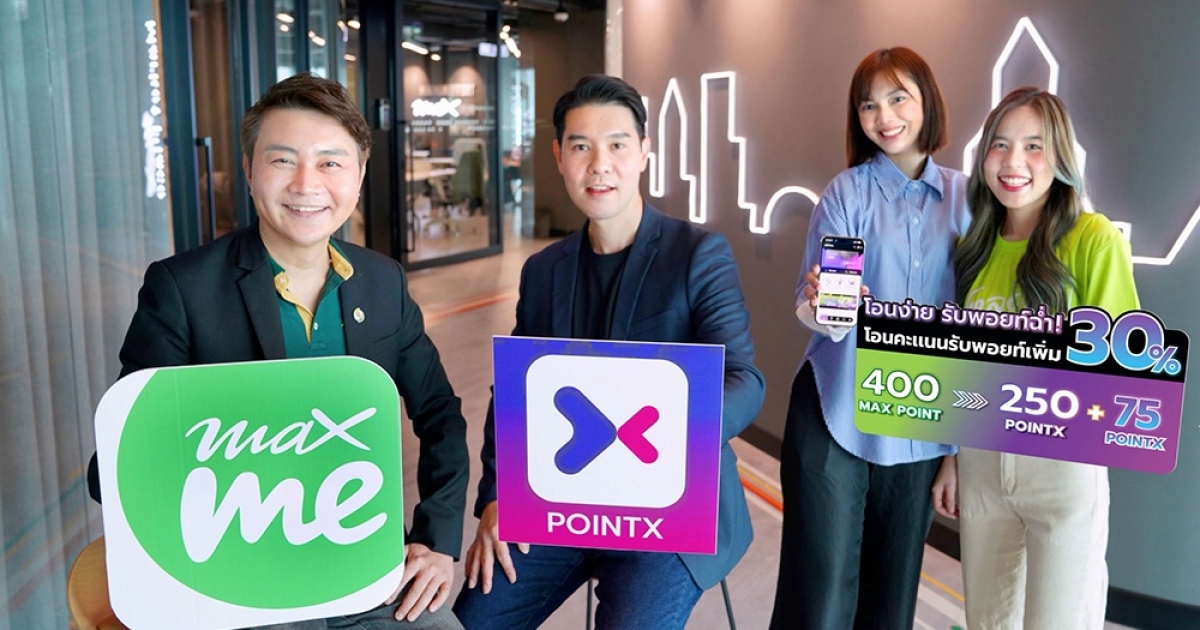 “PointX” จับมือ “แมกซ์ โซลูชัน” เพิ่มทางเลือกในการโอนและใช้คะแนนสะสม ส่งแคมเปญ “โอนง่าย รับพอยท์ฉ่ำ” โอนคะแนน Max Point เป็น PointX รับพอยท์ฟรีเพิ่ม 30%