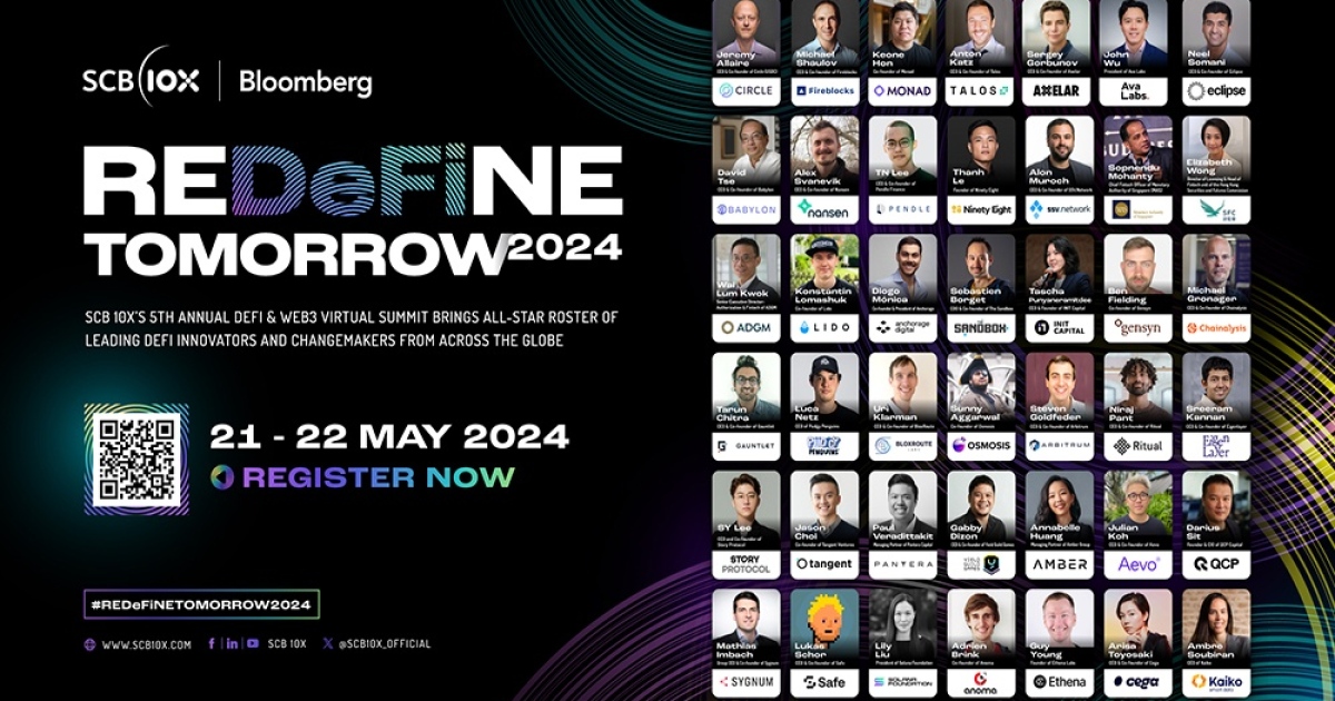 SCB 10X จับมือ Bloomberg เปิดเวที Virtual Summit “REDeFiNE TOMORROW 2024” ปีที่ 5 ขนทัพกูรูระดับโลกเจาะลึกด้าน DeFi และ Web3