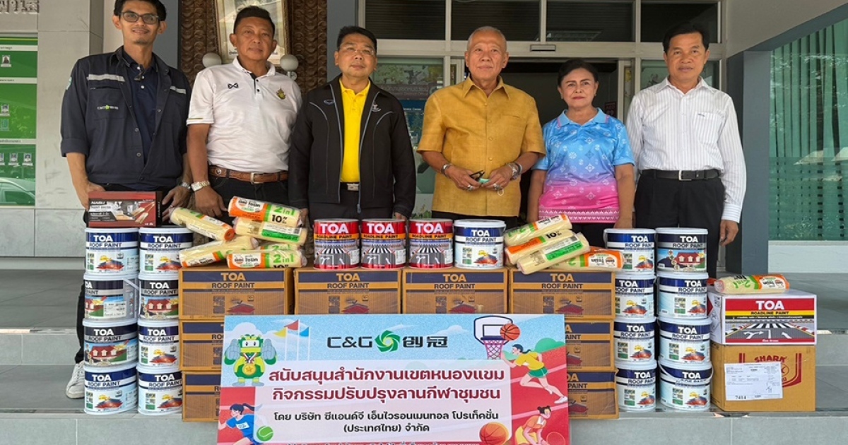 บริษัท ซีแอนด์จี เอ็นไวรอนเมนทอล โปรเท็คชั่น (ประเทศไทย) จำกัด ผู้ดำเนินกิจการโรงกำจัดขยะผลิตไฟฟ้าเพื่อสิ่งแวดล้อม หนองแขม สนับสนุนสีทาพื้นสนามกีฬาและอุปกรณ์ทาสี ให้กับฝ่ายพัฒนาชุมชนและสวัสดิการสังคม เขตหนองแขม