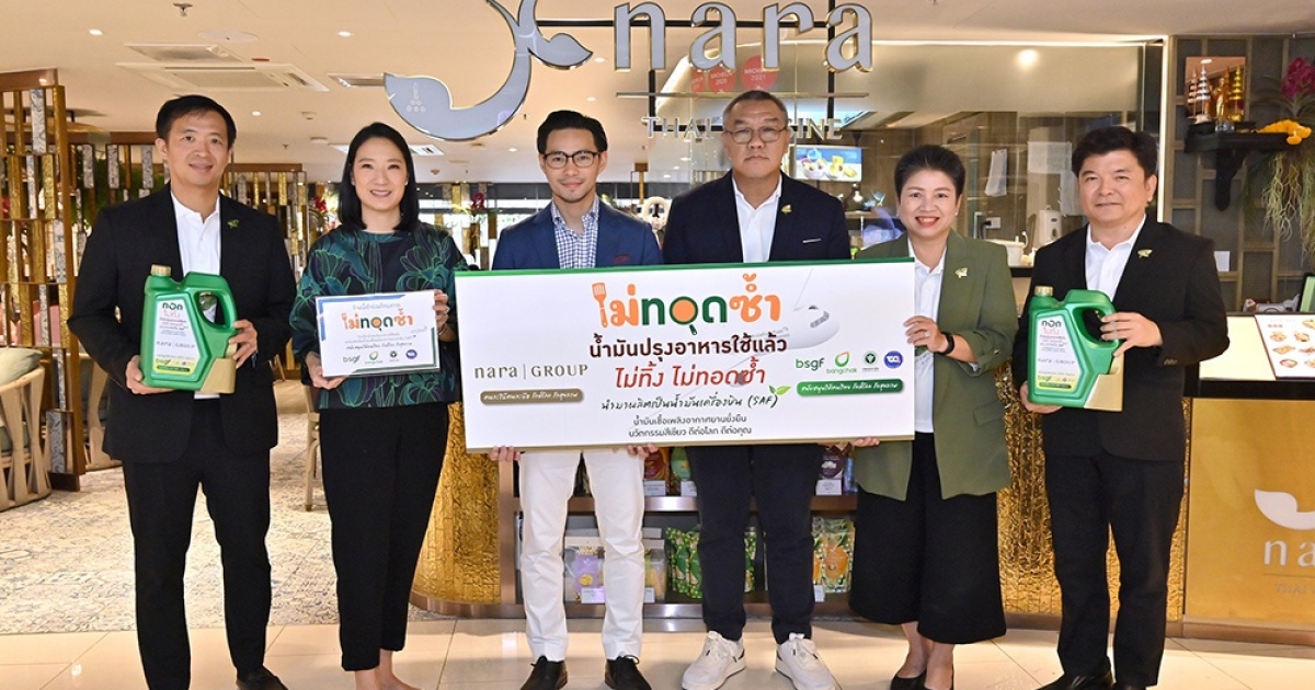 การบริหารจัดการน้ำมันปรุงอาหารใช้แล้วเพื่อนำมาเป็นวัตถุดิบสำหรับผลิต SAF นับเป็นการบริหารจัดการของเสียอย่างมีประสิทธิภาพ และใช้ทรัพยากรให้กลับมามีประโยชน์สูงสุด ซึ่งร้านอาหารในเครือนาราทุกสาขาทั่วประเทศ ร่วมกับบริษัท บีเอสจีเอฟฯ จะบริหารจัดการน้ำมันปรุงอาหารใช้แล้วผ่านโครงการ “ทอดไม่ทิ้ง” มาขายให้บริษัท ธนโชคน้ำมันพืช (2012) จำกัด และบริษัท บีเอสจีเอฟฯ เพื่อเป็นวัตถุดิบสำหรับผลิต SAF สอดคล้องกับโมเดลเศรษฐกิจ BCG และเป็นการส่งเสริมการดูแลทั้งสิ่งแวดล้อมและสุขภาพของผู้บริโภค