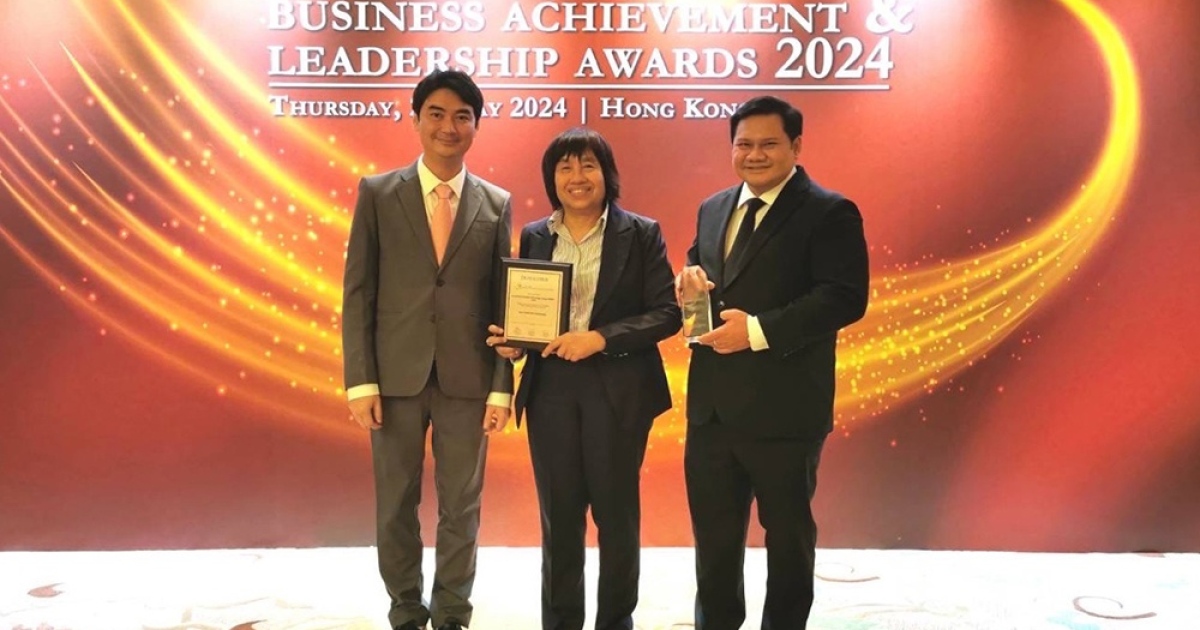 นายเรืองโรจน์ พูนผล (ขวา) ประธานกลุ่มบริษัท กสิกร บิซิเนส-เทคโนโลยี กรุ๊ป ขึ้นรับรางวัล ผู้นำด้านเทคโนโลยี ประจำปี 2567 (Chief Information and Technology Leader of the Year 2024) จากการปรับเปลี่ยนการทำงานขององค์กรและสร้างความเป็นผู้นำด้านเทคโนโลยี AI ให้แก่ KBTG พร้อมด้วยนางวรนุช เดชะไกศยะ (กลาง) Executive Chairman กสิกร บิซิเนส-เทคโนโลยี กรุ๊ป เป็นผู้แทน KBTG รับมอบรางวัลการสร้างสรรค์เทคโนโลยียืนยันตัวตนยอดเยี่ยม ประจำปี 2567 (Best Verification Technology) จากผลงานการพัฒนา AINU (อัยนุ) บริการโซลูชัน AI เทคโนโลยีขั้นสูงเพื่อการยืนยันตัวตนสำหรับภาคธุรกิจ มาตรฐานระดับสากล ที่วิจัยและพัฒนาโดยทีม KBTG จากงาน The Asian Banker Summit 2024 จัดโดยนิตยสาร The Asian Banker ณ โรงแรมคอนราด ฮ่องกง เมื่อเร็ว ๆ นี้
