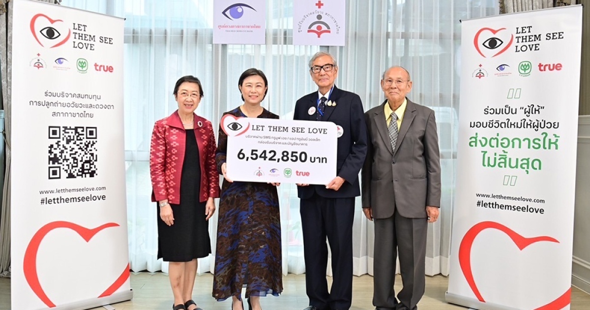 นายเตช บุนนาค เลขาธิการ สภากาชาดไทย พร้อมด้วย นายแพทย์วิศิษฎ์ ฐิตวัฒน์ ผู้อำนวยการ ศูนย์รับบริจาคอวัยวะ และ ผู้ช่วยศาสตราจารย์ แพทย์หญิงลลิดา ปริยกนก ผู้อำนวยการ ศูนย์ดวงตา รับมอบเงินบริจาคจากลูกค้ากลุ่มทรูผ่าน SMS ระบบทรูมูฟ เอช รวมถึงแอปพลิเคชันทรูมันนี่ วอลเล็ท กล่องรับบริจาค และการโอนเงินบริจาคให้กับบัญชีธนาคารของทางศูนย์ฯ จำนวน 6,542,850 บาท ในโครงการ “Let Them See Love 2023” จาก เครือเจริญโภคภัณฑ์ และทรู คอร์ปอเรชั่น โดย นางรุ่งฟ้า เกียรติพจน์ หัวหน้าสายงานสื่อสารแบรนด์ และผู้ช่วยบริหารงานประธานกรรมการ บริษัท ทรู คอร์ปอเรชั่น เพื่อสมทบทุนเป็นค่าใช้จ่ายในกระบวนการบริจาคอวัยวะและดวงตา ณ อาคารเทิดพระเกียรติสมเด็จพระญาณสังวร สภากาชาดไทย
