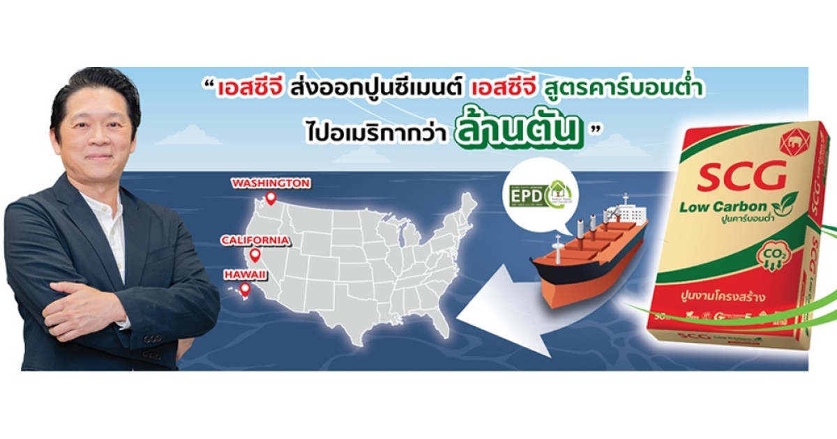 “ปูนคาร์บอนต่ำ เอสซีจี” ฉลองยอดขาย 1 ล้านตัน ส่งออกอเมริกา คุณภาพมาตรฐานสากล รับรองด้วยฉลาก EPD North America