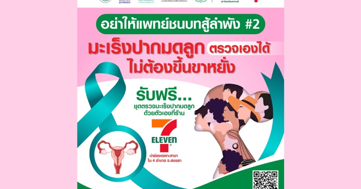 “มูลนิธิแพทย์ชนบท” จับมือ “เครือเจริญโภคภัณฑ์” และ ภาคีเครือข่าย คิกออฟ เตือนหญิงไทยตรวจมะเร็งปากมดลูก "รู้ไว รักษาได้ รอดชีวิต" นำร่องแจกฟรี ชุดตรวจคัดกรองมะเร็งปากมดลูกด้วยตัวเองกว่า 1.2 หมื่นชุด รับได้ที่เซเว่น อีเลฟเว่นใน 4 อำเภอ จ.สงขลา ตั้งแต่ 1-30 มิ.ย.นี้