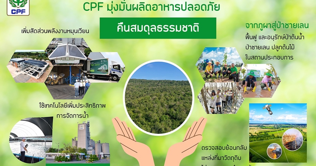 บริษัท เจริญโภคภัณฑ์อาหาร จำกัด(มหาชน) หรือ ซีพีเอฟ มุ่งมั่นนำนวัตกรรมและเทคโนโลยีมาใช้ เพื่อเพิ่มประสิทธิภาพการผลิต คุณภาพและความปลอดภัยของอาหาร ควบคู่ไปกับตระหนักถึงความสำคัญของการมีส่วนร่วมในการดูแลระบบนิเวศ ปกป้องความหลากหลายทางชีวภาพ คืนสมดุลสู่ธรรมชาติ ซึ่งเป็นต้นทางความมั่นคงทางอาหาร สู่เป้าหมายเป็นครัวของโลก ที่ดูแลสุขภาพผู้บริโภคและรักษ์โลกไปด้วยกัน