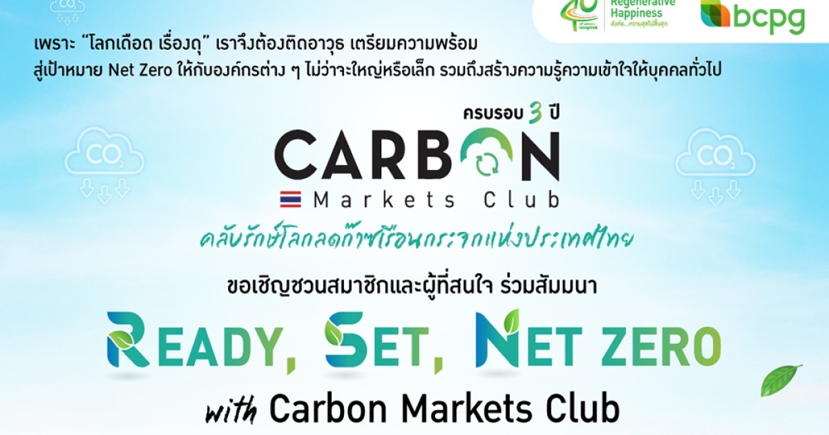เพราะ "โลกเดือด เรื่องดุ" เป็นเรื่องท้าทายในการปรับตัวให้อยู่รอด Carbon Markets Club คลับรักษ์โลกลดก๊าซเรือนกระจกแห่งแรกของประเทศไทย ก่อตั้งโดยบริษัท บางจาก คอร์ปอเรชั่น จำกัด (มหาชน) บริษัท บีซีพีจี จำกัด (มหาชน) และองค์กรก่อตั้งรวม 11 บริษัท เชิญร่วมงาน “READY, SET, NET ZERO with Carbon Markets Club” ในโอกาสครบรอบ 3 ปีของการก่อตั้ง เพื่อร่วมอัพเดทเส้นทางสู่สังคมคาร์บอนต่ำ เตรียมความพร้อมสู่เป้าหมาย Net Zero ให้องค์กรต่าง ๆ รวมถึงบุคคลที่สนใจทั่วไป ในวันพุธที่ 26 มิถุนายน 2567 ช่วงเช้า ณ ห้องประชุมใบไม้ ชั้น 8 อาคารเอ็ม ทาวเวอร์สำนักงานใหญ่ บริษัท บางจากฯ