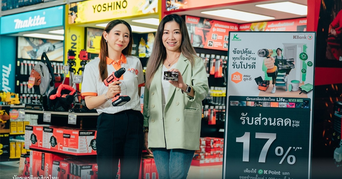 นางสาววรษา กรวิกนลิน (ขวา) ผู้อำนวยการฝ่ายอาวุโส ฝ่ายบริหารผลิตภัณฑ์และการตลาดบัตรเครดิตธนาคารกสิกรไทย และ นางสาวอริยา ตั้งมิตรประชา (ซ้าย) กรรมการบริหาร บริษัท ดูโฮม จำกัด (มหาชน) เปิดตัวแคมเปญช้อปคุ้มทุกเรื่องบ้านรับโปรดี สำหรับลูกค้าผู้ถือบัตรเครดิตกสิกรไทย ที่ซื้อสินค้าเพื่อบ้านครบวงจรทั้งวัสดุก่อสร้าง ซ่อมแซม และตกแต่งบ้านที่ดูโฮม รับโปรโมชันสุดคุ้ม เพียงใช้จ่ายผ่านบัตรเครดิตกสิกรไทยตั้งแต่ 1,000 บาทขึ้นไป และใช้คะแนน K Point ทุก 1,000 คะแนน (สูงสุดไม่เกินยอดใช้จ่ายต่อเซลล์สลิป) แลกรับส่วนลดรวมสูงสุด 17%* สามารถแลกคะแนนเพื่อรับสิทธิ์ผ่านเครื่องรับบัตรเครดิตของธนาคารกสิกรไทยที่จุดชำระเงิน โดยไม่ต้องส่ง SMS ทำรายการ หรือเลือกช้อปสินค้าแบบสบายกระเป๋า ผ่อน 0%* นานสูงสุด 3 เดือน ทุกชิ้นทั้งร้าน รวมสินค้ากลุ่มโครงสร้าง เมื่อช้อปสินค้าที่ร่วมรายการตั้งแต่ 5,000 บาท ขึ้นไป/ใบเสร็จ ที่ดูโฮม และดูโฮมทูโก ทุกสาขาทั่วประเทศ ตั้งแต่ 1 มิ.ย. 67 - 31 ส.ค. 67 ศึกษารายละเอียดเพิ่มเติมได้ที่เว็บไซต์ธนาคารกสิกรไทย https://www.kasikornbank.com/k_3yCzSoU หรือสอบถามข้อมูลผ่าน K-Contact Center โทร. 02-8888888