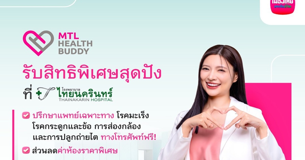 ล่าสุด เมืองไทยประกันชีวิต โดยโครงการ “MTL Health Buddy” จับมือ โรงพยาบาลไทยนครินทร์ ร่วมเติมเต็มความอุ่นใจด้วยการมอบสิทธิประโยชน์พิเศษให้กับลูกค้าในโครงการ MTL Health Buddy ประกอบด้วย