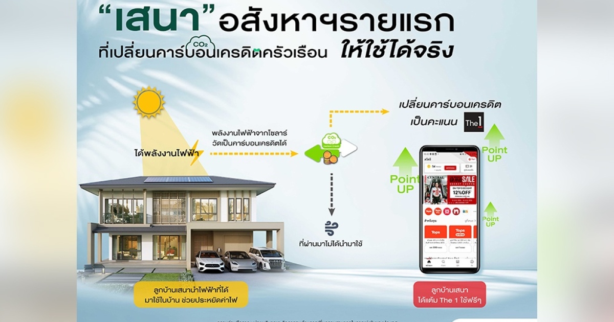 เสนา ผู้พัฒนาอสังหาริมทรัพย์รายแรกที่ติดตั้งโซลาร์เซลล์ให้บ้านทุกหลัง เดินหน้าตอกย้ำความเป็นผู้นำบ้านโซลาร์เซลล์อีกครั้ง กับปรากฏการณ์ครั้งแรกของวงการอสังหาฯ ลูกบ้านเสนาสามารถเปลี่ยนคาร์บอนเครดิตครัวเรือนให้มีมูลค่า นำไปใช้เป็นส่วนลดหรือซื้อสินค้าได้จริง.... เสนา ดีเวลลอปเม้นท์ ร่วมโครงการตลาดคาร์บอนครัวเรือน ภาคสมัครใจ โดยความร่วมมือระหว่างมูลนิธิพลังงานสะอาดเพื่อประชาชน (มพช.), หน่วยบริหารและจัดการทุนด้านการเพิ่มความสามารถในการแข่งขันของประเทศ (บพข.), สถาบันวิจัยพหุศาสตร์ มหาวิทยาลัยเชียงใหม่ และ กลุ่มเซ็นทรัล The 1 Card ในการนำคาร์บอนเครดิตครัวเรือน มาแลกเป็นคะแนน The 1 ได้ฟรี