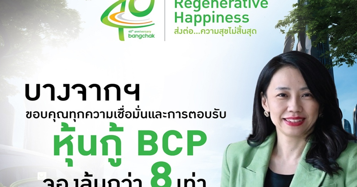 บางจากฯ “ปลื้ม” หุ้นกู้จองล้นกว่า 8 เท่า นำกรีนชูขายเพิ่ม ปิดการขายรวมทั้งสิ้น 10,000 ล้านบาท