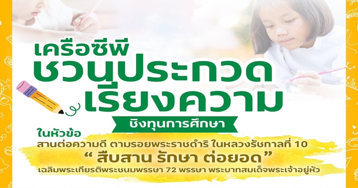 เครือซีพี ร้อยเรียงความดี ชวนเยาวชนประกวดเรียงความ สานต่อความดีตามรอยในหลวง ร.10 ชิงทุนการศึกษา ปลูกฝังจิตสำนึกแห่งความภักดี เฉลิมฉลองปีมหามงคล เฉลิมพระชนมพรรษา 72 พรรษา ในหลวง ร.10