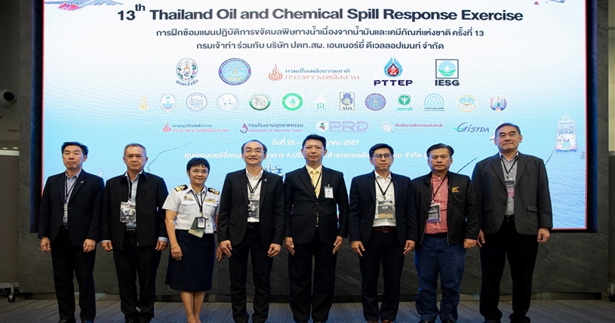 ปตท.สผ. ร่วมกับกรมเจ้าท่า หน่วยงานภาครัฐและเอกชน ฝึกซ้อมแผนปฏิบัติการขจัดมลพิษทางน้ำเนื่องจากน้ำมันและเคมีภัณฑ์แห่งชาติ ครั้งที่ 13