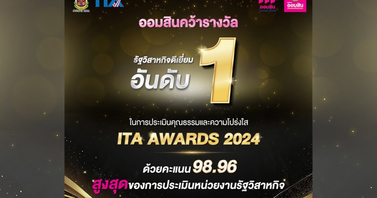 ออมสิน คว้ารัฐวิสาหกิจอันดับ 1 จาก ITA Awards 2024 ด้วยคะแนน 98.96
