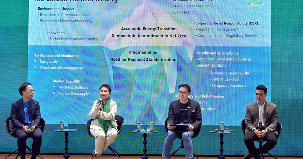 ผู้ร่วมเสวนาสะท้อนบทบาทต่าง ๆ ของแต่ละองค์กรในการสนับสนุนการพัฒนาตลาดคาร์บอนในประเทศ โดยนางกลอยตาได้สะท้อนบทบาทของบางจากฯ ซึ่งได้ตั้งเป้าหมายความเป็นกลางทางคาร์บอนในปี ค.ศ. 2030 และปล่อยก๊าซเรือนกระจกสุทธิเป็นศูนย์ในปี ค.ศ. 2050 โดยมีการสร้าง Net Zero Ecosystem เพื่อรองรับการสร้างสังคมคาร์บอนต่ำ รวมถึงการจัดตั้ง Carbon Markets Club เมื่อ 3 ปีที่แล้วเพื่อสนับสนุนการซื้อขายคาร์บอนเครดิต รองรับการบังคับใช้มาตรการต่าง ๆ ในระดับสากล อาทิ CBAM สร้างความตระหนักรู้เกี่ยวกับวิกฤตสภาวะภูมิอากาศ โดยการทำงานร่วมกับพันธมิตรต่าง ๆ ปัจจุบันมีสมาชิกกว่า 1,000 ราย ทั้งประเภทองค์กรและบุคคลที่พร้อมจะร่วมขับเคลื่อนการซื้อขายคาร์บอนเครดิต ซึ่งเป็นหนึ่งในกลไกสำคัญที่จะมีส่วนช่วยไปสู่การเปลี่ยนผ่านสู่พลังงานสะอาด