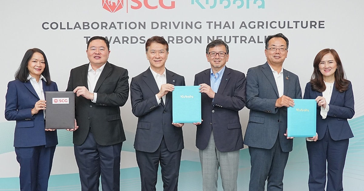 สยามคูโบต้า โดยนายจูนจิ โอตะ กรรมการผู้จัดการใหญ่ พร้อมด้วย นางวราภรณ์ โอสถาพันธุ์ กรรมการรองผู้จัดการใหญ่อาวุโส และนายได วาตานาเบ้ Director and Executive Vice President คูโบต้า คอร์ปอเรชั่น ญี่ปุ่น ร่วมลงนามบันทึกข้อตกลงความร่วมมือความเป็นกลางทางคาร์บอน (Carbon Neutral) ในภาคการเกษตร กับ นายธรรมศักดิ์ เศรษฐอุดม กรรมการผู้จัดการใหญ่ และนางจันทิดา สาริกะภูติ ผู้ช่วยผู้จัดการใหญ่-การเงินและการลงทุน เอสซีจี เพื่อมุ่งสู่ความยั่งยืนของธุรกิจและภาคเกษตรกรรมไทย ผ่าน 3 โซลูชัน Green Energy ศึกษาการใช้เทคโนโลยีระดับสูงและพลังงานทางเลือกในกระบวนการผลิต Green Innovative Product พัฒนานวัตกรรมสินค้าและโซลูชันการทำเกษตร และ Green Farming พัฒนาโซลูชันการเพาะปลูกไปจนถึงการจัดการวัสดุเหลือใช้ทางการเกษตร เพื่อส่งเสริมเกษตรกรรมไทยสู่เกษตรคาร์บอนต่ำ เพิ่มการเข้าถึงทรัพยากรและเทคโนโลยีใหม่ๆ ที่ช่วยลดการปล่อยคาร์บอน ตลอดจนลดต้นทุน เพิ่มผลผลิต และสร้างรายได้จาก Agri Waste เพื่อยกระดับคุณภาพชีวิตเกษตรกรและสิ่งแวดล้อมให้ดีขึ้น