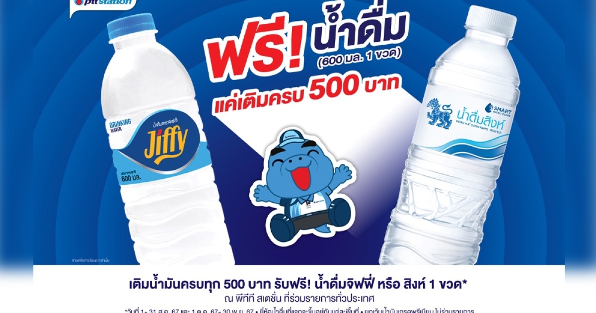 แจกความสดชื่น! ตลอดเดือนสิงหาคมนี้ เติมน้ำมัน พีทีที สเตชั่น ครบ 500 บาท รับฟรีน้ำดื่มขนาด 600 มล. 1 ขวด