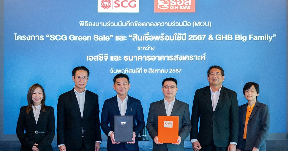 เอสซีจี ผู้นำด้านวัสดุก่อสร้างเพื่อการอยู่อาศัยยั่งยืน จับมือพันธมิตร ธนาคารอาคารสงเคราะห์ (ธอส.) จัดแคมเปญพิเศษ “SCG Green Sale” ส่งเสริมให้เจ้าของบ้านยุคใหม่เข้าถึงนวัตกรรมสีเขียว มีบ้านสวยที่ประหยัดพลังงาน ผ่านโปรแกรมสมาชิก SCG Family โดยมอบส่วนลดสูงสุดถึง 10,500 บาทให้แก่ลูกค้า ธอส. และลุ้นรางวัลมูลค่า 1.5 ล้านบาท เมื่อซื้อสินค้าวัสดุก่อสร้างของเอสซีจี โดยสามารถกู้ซื้อสินค้าผ่าน “สินเชื่อพร้อมใช้ปี 2567” ได้ทันที ดอกเบี้ยต่ำ คงที่ 3 ปี ที่นำเสนอโดย ธอส. โดยได้มีการลงนามบันทึกความร่วมมือ (MOU) ไปเมื่อวันที่ 8 สิงหาคมที่ผ่านมา