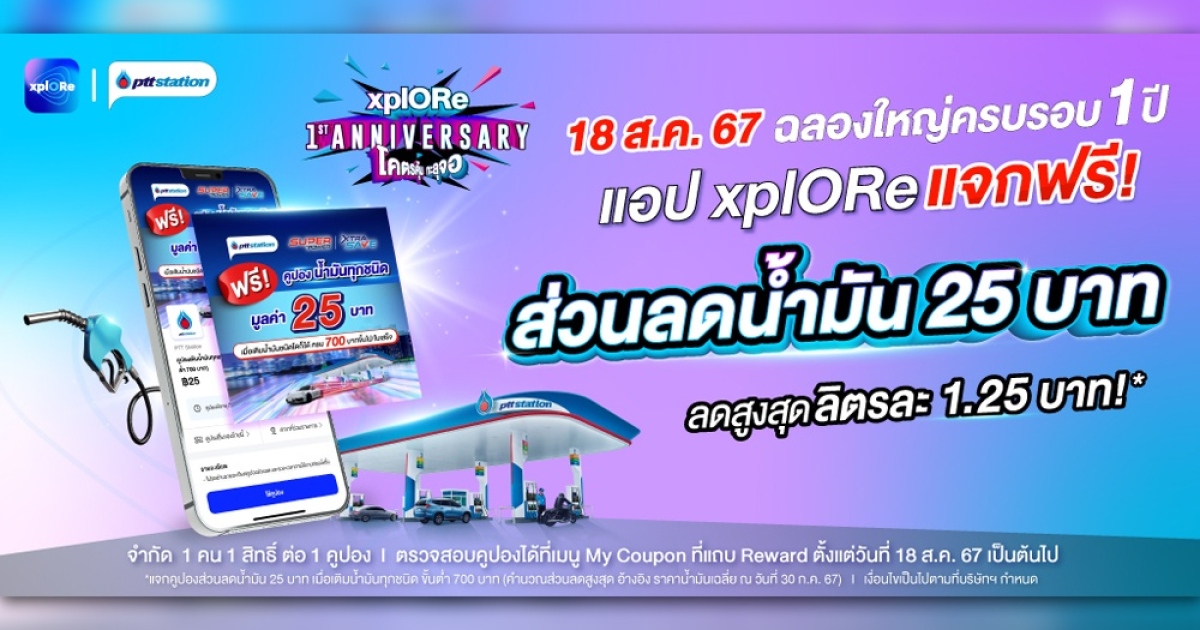 xplORe แอปพลิเคชัน จัดหนัก แจกจริง มอบความสุขครั้งใหญ่ในโอกาสฉลองครบรอบ 1 ปี ด้วยแคมเปญสุดอลังการ “โคตรคุ้ม ทะลุจอ” แจกความคุ้มค่ากันเน้น ๆ ให้ทั้งผู้สมัครใช้งานใหม่และสมาชิกปัจจุบันได้เพลิดเพลินกับส่วนลดและความคุ้มค่าในการใช้ชีวิตประจำวันมากยิ่งขึ้น สัมผัสความพิเศษกันอย่างทั่วถึง รวมมูลค่ากว่า 100 ล้านบาท พร้อมรับสิทธิ์ทุกความคุ้มเพียงโหลดแอป xplORe ตั้งแต่วันที่ 1 – 31 สิงหาคม 2567