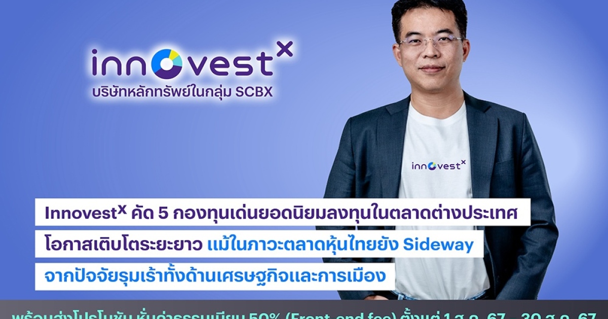 InnovestX คัด 5 กองทุนเด่นยอดนิยมลงทุนในตลาดต่างประเทศ โอกาสเติบโตระยะยาว แม้ในภาวะตลาดหุ้นไทยยัง Sideway จากปัจจัยรุมเร้าทั้งด้านเศรษฐกิจและการเมือง