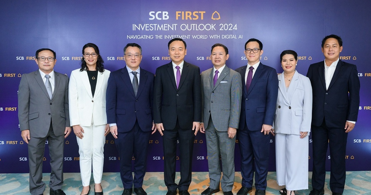 ดร.ยรรยง ไทยเจริญ (ที่4ซ้าย) รองผู้จัดการใหญ่อาวุโส ประธานเจ้าหน้าที่บริหารกลุ่มธุรกิจ WEALTH ธนาคารไทยพาณิชย์ นำทีมผู้บริหารจัดงาน สัมมนา SCB First Investment Outlook 2024 ภายใต้หัวข้อ “Navigating the Investment World with Digital AI ”ให้กับกลุ่มลูกค้า First โดยมี ดร. ชาลี อัศวธีระธรรม (ที่3 ซ้าย) รองผู้จัดการใหญ่อาวุโส ประธานเจ้าหน้าที่บริหาร กลุ่มงาน Digital Banking ธนาคารไทยพาณิชย์ นายศรชัย สุเนต์ตา (ที่ 4 ขวา) รองผู้จัดการใหญ่ ผู้บริหารสายงาน Investment Office and Product กลุ่มธุรกิจ Wealth ธนาคารไทยพาณิชย์ ดร.ฐิติมา ชูเชิด(ที่2ซ้าย) ผู้อำนวยการฝ่ายวิจัยเศรษฐกิจมหภาค ธนาคารไทยพาณิชย์ และนายสิทธิชัย ดวงรัตนฉายา (ที่3 ขวา) นักกลยุทธ์อาวุโส ตลาดหุ้นไทยและต่างประเทศ ฝ่ายกลยุทธ์การลงทุน บริษัทหลักทรัพย์ อินโนเวสท์ เอกซ์ จำกัด ร่วมสัมมนา เมื่อเร็วๆนี้ ณ โรงแรมแมนดาริน โอเรียลเต็ล กรุงเทพฯ