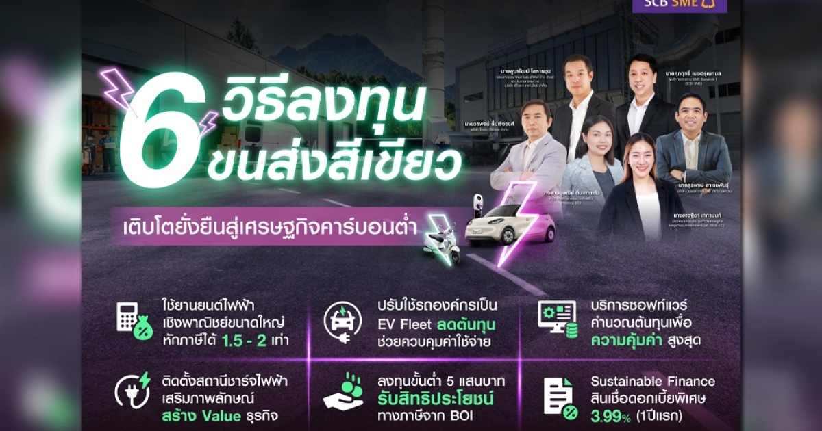 นายศุภฤทธิ์ เมฆอรุณกมล ผู้อำนวยการอาวุโส SME Bangkok 1 Function ธนาคารไทยพาณิชย์ กล่าวว่า ธนาคารพร้อมสนับสนุนทุกโอกาสการเติบโตให้แก่ลูกค้าผู้ประกอบการเอสเอ็มอี เพื่อนำไปสู่โอกาสในการใช้นวัตกรรมการขนส่งที่เป็นมิตรต่อสิ่งแวดล้อม ตลอดจนช่วยให้ธุรกิจลดการปล่อยก๊าซเรือนกระจกสุทธิเป็นศูนย์ โดยผู้ประกอบการที่สนใจลงทุนเปลี่ยนมาใช้ยานยนต์ไฟฟ้าในองค์กร หรือ เพื่อการขนส่งเชิงพาณิชย์ ธนาคารมีผลิตภัณฑ์สินเชื่อเพื่อความยั่งยืนของธุรกิจ (Sustainable Finance) สินเชื่อระยะยาว ให้วงเงินสูงสุดไม่เกิน 100% ของโครงการ ดอกเบี้ยพิเศษ 3.99% (1 ปีแรก) ผ่อนนาน 10 ปี วงเงินหมุนเวียนในธุรกิจ ไม่ต้องใช้หลักประกัน สูงสุด 50 ล้านบาท ผ่อนนาน10 ปี นอกจากนี้ ยังมีสินเชื่อเพื่อเช่าซื้อรถประหยัดพลังงาน วงเงินสูงสุด 30 ล้านบาท ผ่อนนานสูงสุด 5 ปี เพื่อสนับสนุนให้ผู้ประกอบการเอสเอ็มอีเปลี่ยนธุรกิจเป็นธุรกิจรักษ์โลก ด้วยเงินทุนสนับสนุนการปรับปรุงด้าน ESG ลงทุนเทคโนโลยีที่ลดการใช้พลังงานและทรัพยากร ปรับปรุงเปลี่ยนแปลงระบบหรืออุปกรณ์เพิ่มประสิทธิภาพพลังงานในอาคาร , เงินทุนซื้อรถประหยัดพลังงาน เปลี่ยนยานพาหนะเป็นประเภทไฟฟ้าหรือไฮบริดสำหรับธุรกิจ,สถานีชาร์จรถยนต์ไฟฟ้า