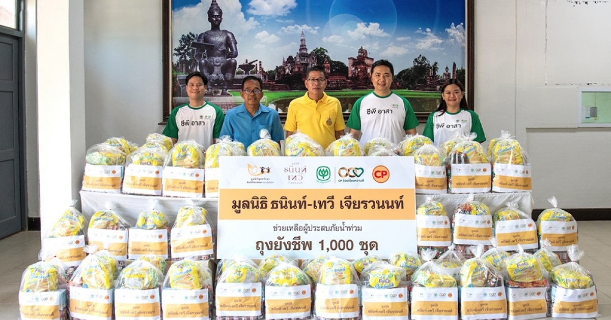 เครือซีพี-มูลนิธิธนินท์ เทวี เจียรวนนท์ มอบถุงยังชีพ ช่วยประชาชนที่ได้รับผลกระทบน้ำท่วม จ.สุโขทัย