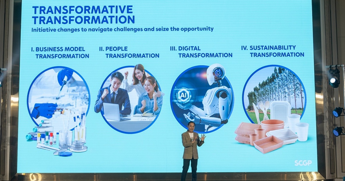 “วิชาญ จิตร์ภักดี” ประธานเจ้าหน้าที่บริหาร บริษัทเอสซีจี แพคเกจจิ้ง จำกัด (มหาชน) หรือ SCGP เปิดประเด็นว่า โลกกำลังเปลี่ยนแปลงอย่างรวดเร็ว หากธุรกิจไม่ปรับตัวจะไม่สามารถแข่งขันได้ ซึ่ง SCGP ได้ปรับตัวมาอย่างต่อเนื่อง โดยเฉพาะ Sustainability Transformation ถือเป็นดีเอ็นเอของเอสซีจี โดย SCGP ตั้งเป้าหมายลดการปล่อยก๊าซเรือนกระจกลง 25% ภายในปี 2030 และ Net Zero ภายในปี 2050 ผ่านการดำเนินงานใน 2 ด้านหลัก ได้แก่ การประเมินคาร์บอนฟุตพริ้นท์ขององค์กรหรือ CFO (Carbon Footprint for Organization) หันมาใช้พลังงานเชื้อเพลิงที่ปล่อยก๊าซคาร์บอนไดออกไซด์ต่ำ โดยติดตั้งโซลาร์รูฟ และใช้พลังงานชีวมวลแทนพลังงานถ่านหิน นำเทคโนโลยีปัญญาประดิษฐ์เข้ามาเพิ่มประสิทธิภาพเพื่อใช้พลังงานน้อยลงและสามารถลดการปล่อยก๊าซเรือนกระจก 1 ล้านตัน ปลูกต้นไม้สะสมจำนวน 2.3 ล้านต้น นำขยะพลาสติกมาหลอมเป็นเมล็ดพลาสติกใหม่ นำเศษเยื่อกระดาษจากกระบวนการผลิตไปทำสารปรับปรุงดิน 24,000 ตันต่อปี เพื่อนำไปปลูกต้นยูคาลิปตัสสำหรับผลิตกระดาษต่อไป