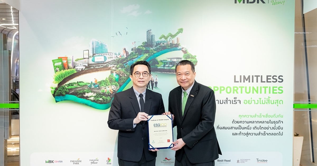 บริษัท เอ็ม บี เค จำกัด (มหาชน) หรือ MBK ซึ่งเป็นบริษัทชั้นนำที่เติบโตอย่างมั่นคงในระดับแถวหน้าของประเทศไทยที่มีการบริหารจัดการที่มีประสิทธิภาพทั้งในด้านการลงทุนและประกอบธุรกิจเพื่อให้ได้ผลตอบแทนอย่างยั่งยืน ได้รับคัดเลือกให้เป็นหนึ่งในบริษัทกลุ่มหลักทรัพย์ ESG100 ที่มีการดำเนินงานโดดเด่นด้านสิ่งแวดล้อม สังคม และธรรมาภิบาล (Environmental, Social and Governance: ESG) จากการประเมินหลักทรัพย์จดทะเบียน ในปี พ.ศ.2567