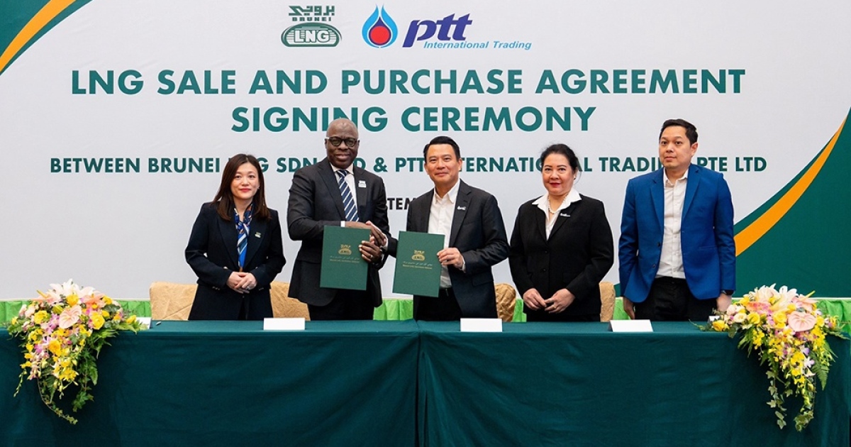 บริษัท ปตท. ค้าสากล จำกัด (PTTT) ลงนามสัญญาซื้อขายก๊าซธรรมชาติเหลว (LNG) ระยะยาวร่วมกับ Brunei LNG Sendirian Berhad (BLNG) เป็นครั้งแรก โดยมี นายพงษ์พันธุ์ อมรวิวัฒน์ รองกรรมการผู้จัดการใหญ่หน่วยธุรกิจการค้าระหว่างประเทศ บริษัท ปตท. จำกัด (มหาชน) (ปตท.) (กลาง) เป็นประธานในพิธี พร้อมด้วย นางธนันต์พร ตั้งพิทักษ์กุล กรรมการผู้จัดการ บริษัท ปตท. ค้าสากล จำกัด (ที่ 2 จากขวา) Mr. Gbolahan Adeleye Falade, Managing Director / Chief Executive Officer, BLNG (ที่ 2 จากซ้าย) ร่วมลงนาม ทั้งนี้ การลงนามสัญญาดังกล่าว มีระยะเวลาของสัญญาตั้งแต่ พ.ศ. 2568 – 2572 เพื่อเพิ่มขีดความสามารถในการแข่งขัน และเสริมศักยภาพด้านการค้าระหว่างประเทศของ ปตท. เพื่อสร้างความมั่นคงทางพลังงานให้แก่ประเทศ มุ่งสู่การเป็นศูนย์กลางซื้อขาย LNG ในภูมิภาคอาเซียน ตลอดจนเป็นการต่อยอดความร่วมมือภายในภูมิภาค สอดรับกับพันธกิจของ ปตท. ที่มุ่งสู่การเติบโตขององค์กรในระดับโลกอย่างยั่งยืน