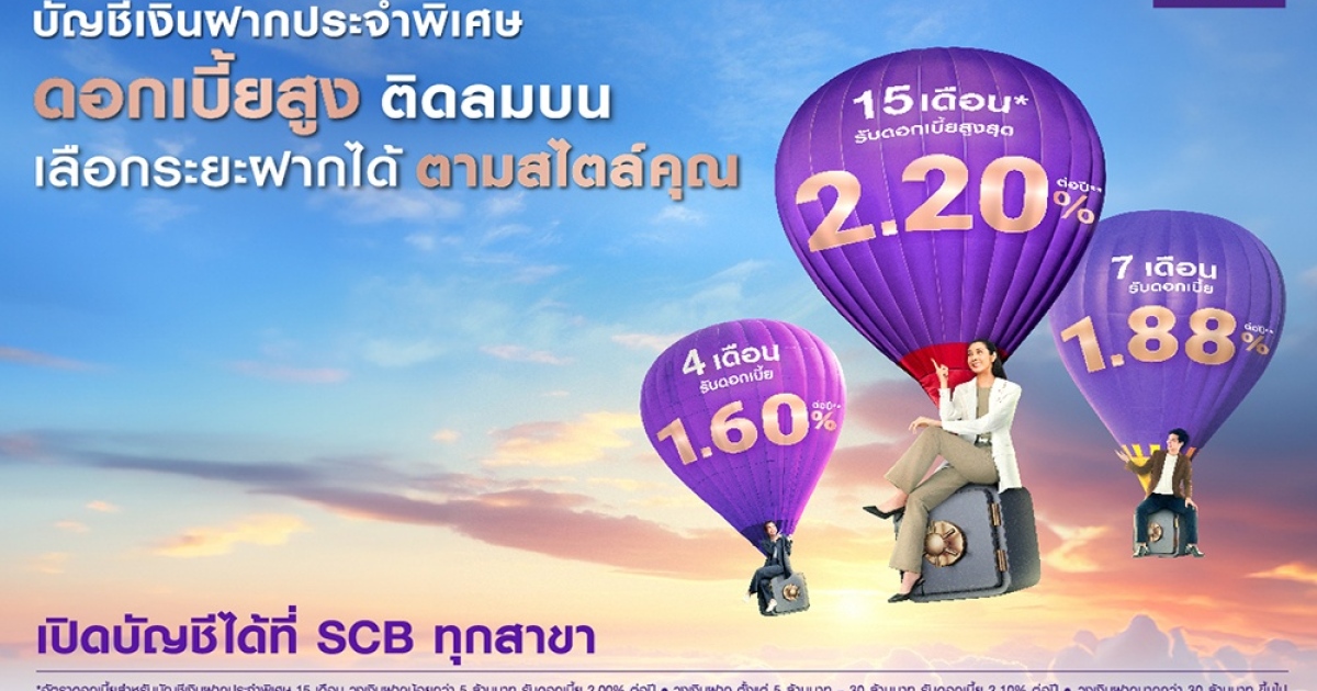 SCB มุ่งส่งเสริมวินัยการออมให้คนไทย ส่ง “บัญชีเงินฝากประจำพิเศษ” ดอกเบี้ยสูง ติดลมบน รับดอกเบี้ยสูงสุดถึง 2.2% ต่อปี*