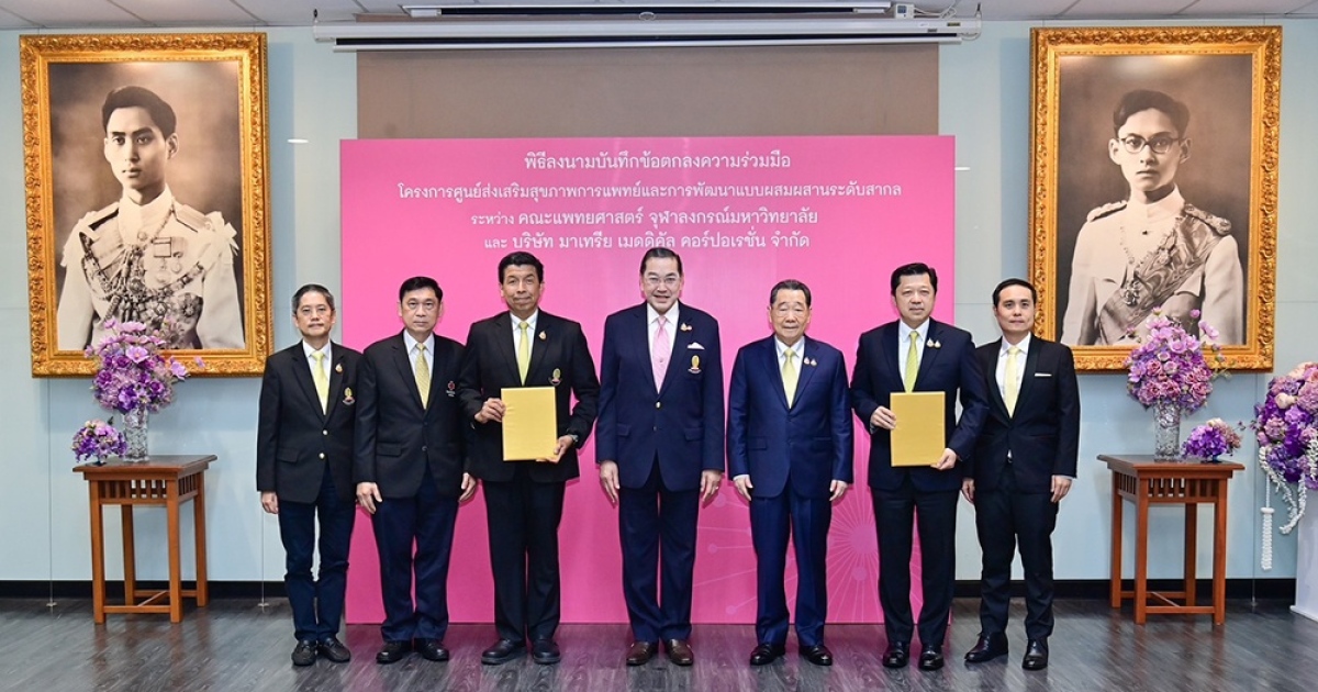 คณะแพทยศาสตร์ จุฬาลงกรณ์มหาวิทยาลัย ลงนามบันทึกความร่วมมือกับ บริษัท มาเทรีย เมดดิคัล คอร์ปอเรชั่น จำกัด ในการพัฒนางานวิจัย บุคลากร และนวัตกรรมทางการแพทย์ ผ่านโครงการศูนย์ส่งเสริมสุขภาพและการแพทย์ครบวงจรระดับสากล โดยมี รองศาสตราจารย์นายแพทย์ ฉันชาย สิทธิพันธุ์ คณบดีคณะแพทยศาสตร์ และนายศุภชัย เจียรวนนท์ ประธานกรรมการบริษัท เป็นผู้ลงนาม พร้อมทั้งได้รับเกียรติจาก ศาสตราจารย์พิเศษ ดร.สุรเกียรติ เสถียรไทย นายธนินท์ เจียรวนนท์ รศ.นพ.สมพงษ์ สุวรรณวลัยกร พร้อม รศ.ดร.นพ.จิรุตม์ ศรีรัตนบัลล์และนายรุ่งโรจน์ จงศุจิพันธุ์ เป็นสักขีพยานกิตติมศักดิ์