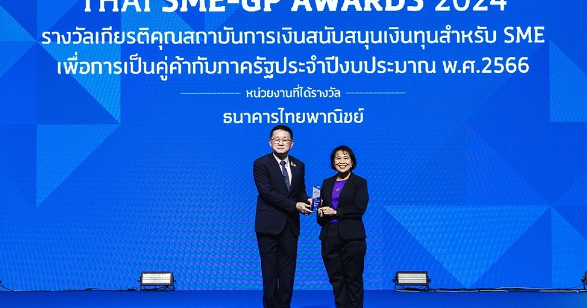 ไทยพาณิชย์ รับรางวัลเกียรติคุณสถาบันเงินที่สนับสนุนเงินทุนสำหรับ SME เพื่อการเป็นคู่ค้ากับภาครัฐ จากเวที THAI SME-GP AWARDS 2024