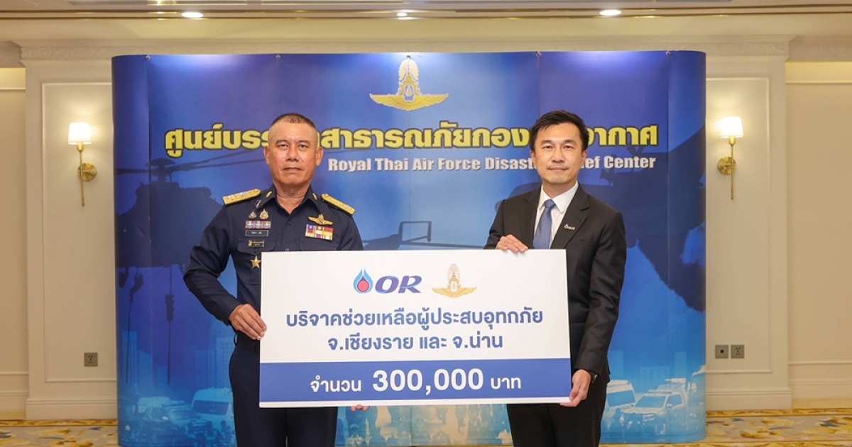 โออาร์ เดินหน้าให้ความช่วยเหลือผู้ประสบอุทกภัยในพื้นที่ภาคเหนืออย่างต่อเนื่อง โดยมอบเงินบริจาคผ่านกองทัพอากาศ เพื่อช่วยเหลือและฟื้นฟูพื้นที่ประสบภัยในจังหวัดเชียงรายและจังหวัดน่าน