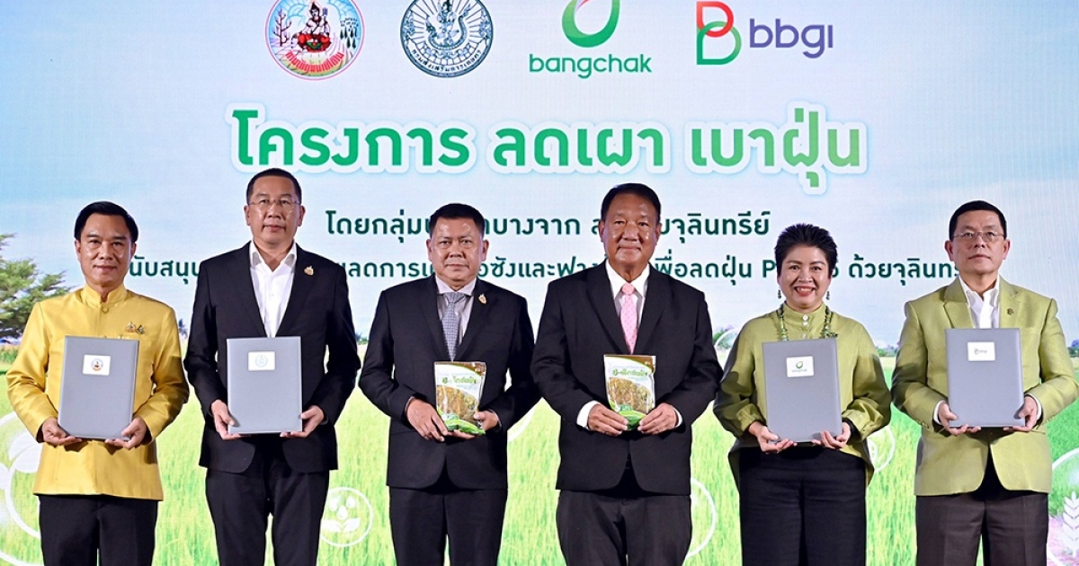 กระทรวงเกษตรฯ หนุน "ลดเผา เบาฝุ่น" โดยบางจากฯ และบีบีจีไอ สนับสนุนเกษตรกรไทยลดการเผาตอซังและฟางข้าว เพื่อลดฝุ่น PM 2.5 ด้วยจุลินทรีย์