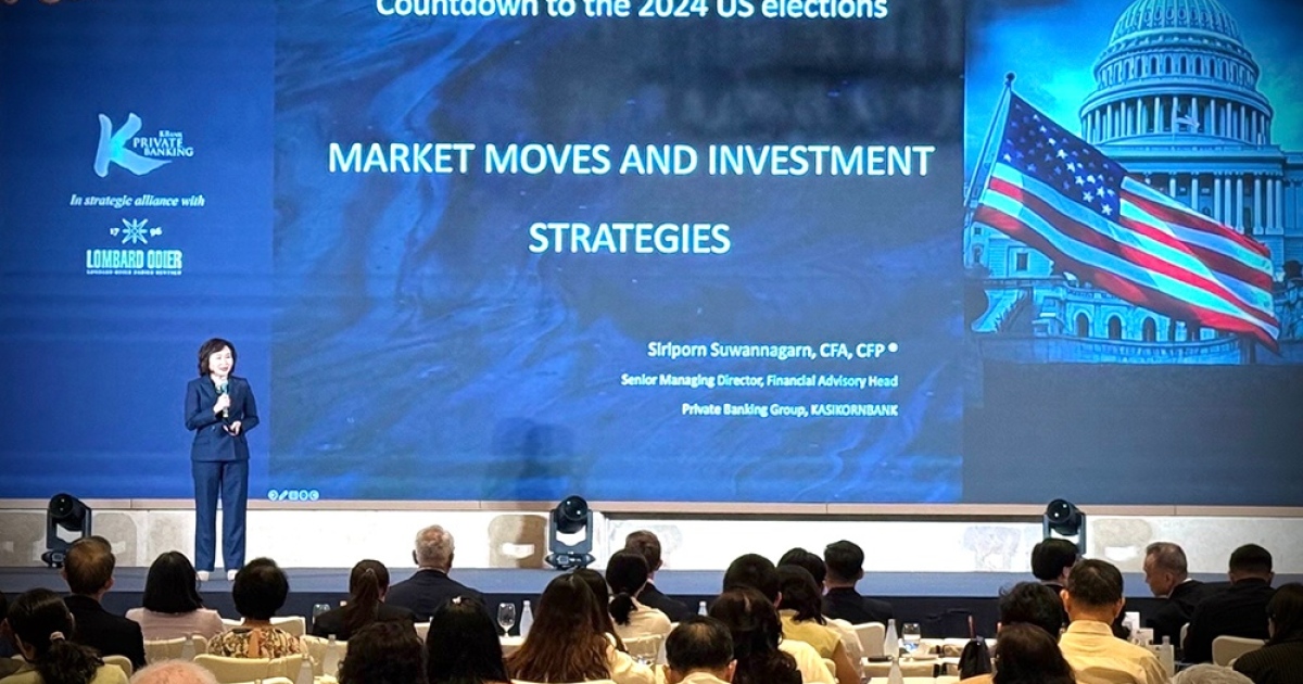 KBank Private Banking ร่วมกับ Lombard Odier และ J.P. Morgan Asset Management (JPMAM) จัดงานสัมมนาในหัวข้อ Countdown To The Us Elections: Market Moves And Investment Strategies เพื่อวิเคราะห์สถานการณ์โค้งสุดท้ายการเลือกตั้งประธานาธิบดีสหรัฐอเมริกาที่กำลังจะเกิดขึ้น ถือเป็นการเลือกตั้งที่น่าจับตามองมากที่สุด ด้วยสถานการณ์ในปัจจุบันที่ผลโพลและคะแนนนิยมค่อนข้างสูสีกัน ประกอบกับเศรษฐกิจโลกที่กำลังชะลอตัว และอยู่ในวัฏจักรดอกเบี้ยขาลง บวกกับการแบ่งขั้วทางการเมือง รวมถึงความขัดแย้งระหว่างประเทศที่มีการเผชิญหน้าอย่างชัดเจนและรุนแรงมากขึ้น ที่ล้วนเป็นปัจจัยที่สร้างความกังวลให้กับนักลงทุน อย่างไรก็ดี ไม่ว่าผลการเลือกตั้งจะออกมาอย่างไรก็จะส่งผลต่อการเปลี่ยนแปลงนโยบาย กระทบเศรษฐกิจ ธุรกิจ และการลงทุน ทั้งนี้ได้แนะให้นักลงทุนจัดพอร์ตแบบกระจายความเสี่ยง เพื่อรับมือกับความผันผวนระยะสั้นหลังการเลือกตั้ง