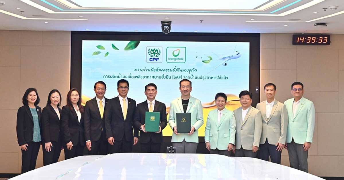 บางจากฯ จับมือ CPF ร่วมสร้างพลังงานแห่งอนาคต นำน้ำมันปรุงอาหารใช้แล้วผลิต SAF