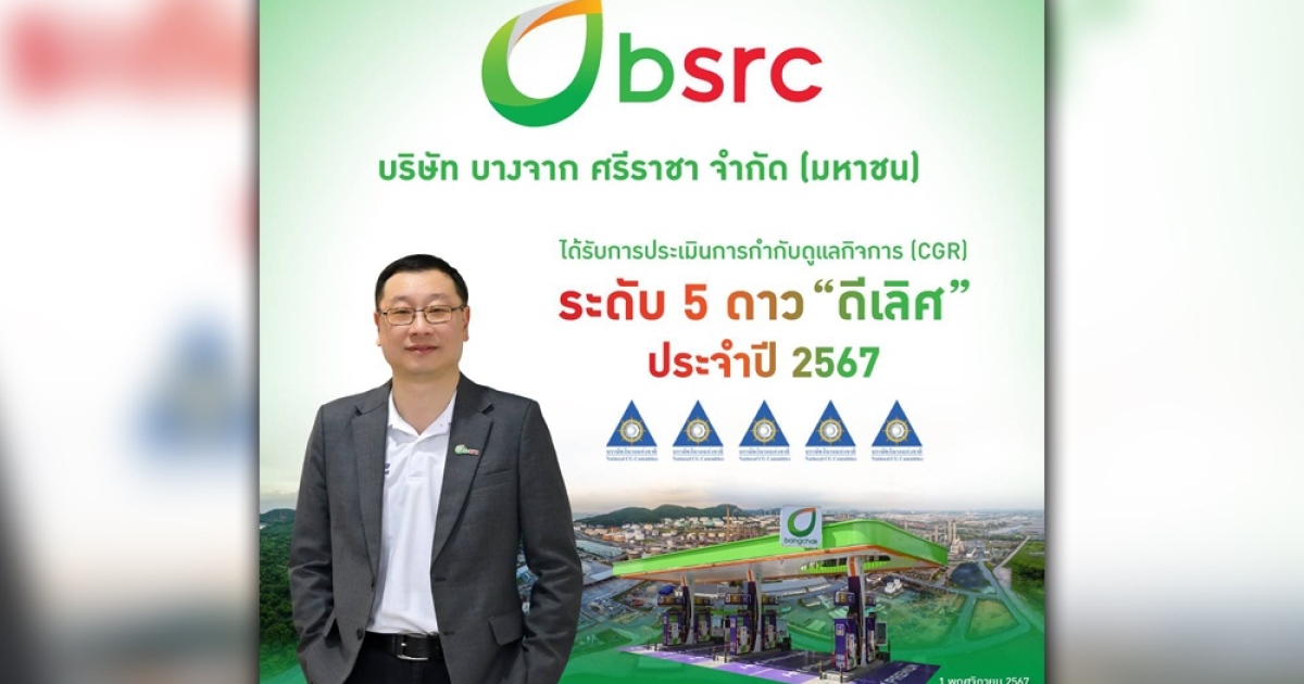 บริษัท บางจาก ศรีราชา จำกัด (มหาชน) หรือ BSRC เข้ารับการประเมินการกำกับดูแลกิจการบริษัทจดทะเบียนไทย หรือ Corporate Governance Report for Thai Listed Company (CGR) ประจำปี 2567 โดยได้รับคะแนนในระดับ 5 ดาว “ดีเลิศ” หรือ “Excellent” แสดงถึงการดำเนินธุรกิจอย่างโปร่งใส โดยมีการกำกับดูแลกิจการที่ดีเยี่ยม สอดคล้องกับแนวคิดการดำเนินธุรกิจอย่างยั่งยืน