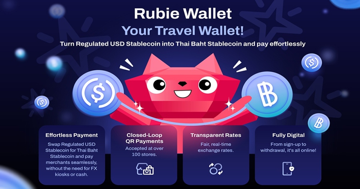 Rubie Wallet เป็นแอปพลิเคชันกระเป๋าเงินดิจิทัล ที่ออกแบบมาเพื่ออำนวยความสะดวกสำหรับชาวต่างชาติที่เดินทางมาเข้าร่วมงานสัมมนา DevCon 2024 ณ กรุงเทพฯ โดยจะเปิดให้ทดสอบใช้งานระหว่างวันที่ 5-25 พฤศจิกายน 2567 ในการชำระเงินอย่างไร้รอยต่อด้วยการใช้ Stablecoin ในการแปลงสกุลเงินดิจิทัลที่ผูกกับเงินดอลลาร์สหรัฐ (Regulated US-dollar pegged Stablecoin) เป็นสกุลเงินบาทดิจิทัล (Thai Baht Stablecoin: THBX) ได้แบบเรียลไทม์เพื่อชำระค่าสินค้าและบริการ เฉพาะร้านค้าที่เข้าร่วมโครงการทดสอบ มุ่งยกระดับประสบการณ์การชำระเงินด้วยทางเลือกใหม่ที่รวดเร็วและคุ้มค่ากว่าการแลกเปลี่ยนเงินตราต่างประเทศแบบดั้งเดิม