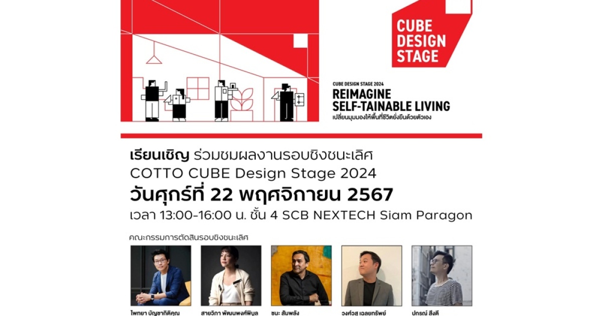 “COTTO” ชวนร่วมงานประกาศผล “COTTO Cube Design Stage 2024” เฟ้นหาสุดยอดนักออกแบบดาวรุ่ง ภายใต้แนวคิด “REIMAGINE SELF-TAINABLE LIVING”