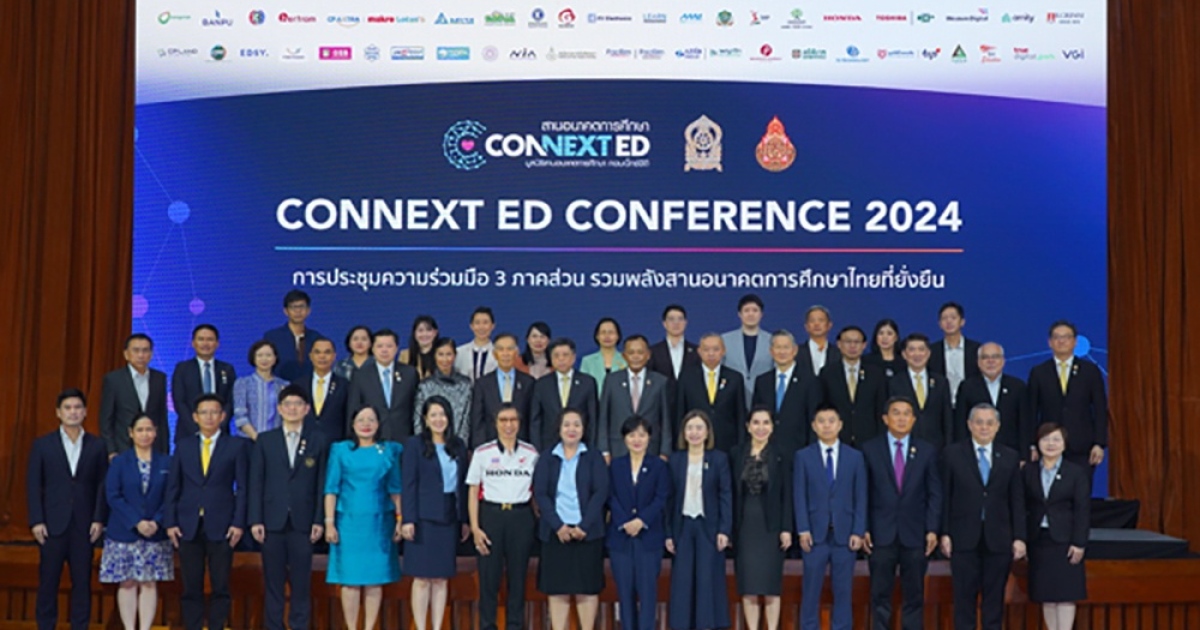 ผนึกความร่วมมือ รวมพลังระดับประเทศ ต่อเนื่องเป็นปีที่ 8 มุ่งขับเคลื่อนการศึกษาไทยสู่ความยั่งยืน...มูลนิธิสานอนาคตการศึกษา คอนเน็กซ์อีดี นำโดย องคมนตรี พลเอก ดาว์พงษ์ รัตนสุวรรณ ในฐานะประธานที่ปรึกษากิตติมศักดิ์ จัดการประชุม “ความร่วมมือ 3 ภาคส่วน รวมพลังสานอนาคตการศึกษาไทยที่ยั่งยืน” ประจำปี 2567 ณ ห้องประชุมบุณยเกต หอประชุมคุรุสภา กระทรวงศึกษาธิการ โดยมีคณะที่ปรึกษาและผู้ทรงคุณวุฒิจากภาครัฐ โดย รัฐมนตรีว่าการกระทรวงศึกษาธิการ พลตำรวจเอก เพิ่มพูน ชิดชอบ ภาคประชาสังคม และภาคเอกชน โดย นายศุภชัย เจียรวนนท์ ประธานคณะผู้บริหาร เครือเจริญโภคภัณฑ์ และประธานกรรมการ บมจ. ทรู คอร์ปอเรชั่น ในฐานะประธานคณะกรรมการบริหารมูลนิธิฯ พร้อมด้วยซีอีโอ คณะผู้บริหารจากองค์กรผู้ร่วมก่อตั้ง อาทิ นายชาติศิริ โสภณพนิช กรรมการผู้จัดการใหญ่ ธนาคารกรุงเทพ จำกัด (มหาชน) นายฐาปน สิริวัฒนภักดี ประธานเจ้าหน้าที่บริหาร บมจ. ไทยเบฟเวอเรจ นายอาทิตย์ นันทวิทยา ประธานเจ้าหน้าที่บริหาร บมจ. เอสซีบี เอกซ์ นายอัศวิน เตชะเจริญวิกุล ประธานเจ้าหน้าที่บริหารและกรรมผู้จัดการใหม่ บมจ. เบอร์ลี่ ยุคเกอร์ นายประสิทธิ์ บุญดวงประเสริฐ ประธานคณะผู้บริหาร บมจ. เจริญโภคภัณฑ์อาหาร นายยุทธศักดิ์ ภูมิสุรกุล ประธานเจ้าหน้าที่บริหาร บมจ. ซีพี ออลล์ นายณัฐวุฒิ อมรวิวัฒน์ ประธานกรรมการ บริษัท ทรูดิจิทัล กรุ๊ป จำกัด และนายมนัสส์ มานะวุฒิเวช ประธานเจ้าหน้าที่บริหาร บมจ. ทรู คอร์ปอเรชั่น ตลอดจนเครือข่ายพันธมิตร 55 องค์กร ร่วมกันแลกเปลี่ยนความคิดเห็น หารือและวางแผนการดำเนินงานในระยะต่อไป อันได้แก่ การใช้ระบบ School Management System ครอบคลุมทุกโรงเรียนในสังกัดสพฐ. เพื่อเพิ่มความโปร่งใสและประสิทธิภาพการบริหารจัดการ การระดมทุนในโครงการ "โน้ตบุ๊กเพื่อการศึกษา" ให้ครบตามเป้าหมาย 88 ล้านบาท อีกทั้งจัดตั้งศูนย์ Learning Center นำร่องในโรงเรียนคุณภาพทั่วประเทศ รวมถึงพัฒนาผู้นำด้านเทคโนโลยีเพื่อการศึกษา (ICT Talent) ให้ครอบคลุมทุกโรงเรียนในสังกัดสพฐ. ภายในปี 2570 ควบคู่กับการจัดหลักสูตรอบรมเพิ่มพูนทักษะการบริหารและการสอนร่วมกับสพฐ. และภาคส่วนที่เกี่ยวข้อง