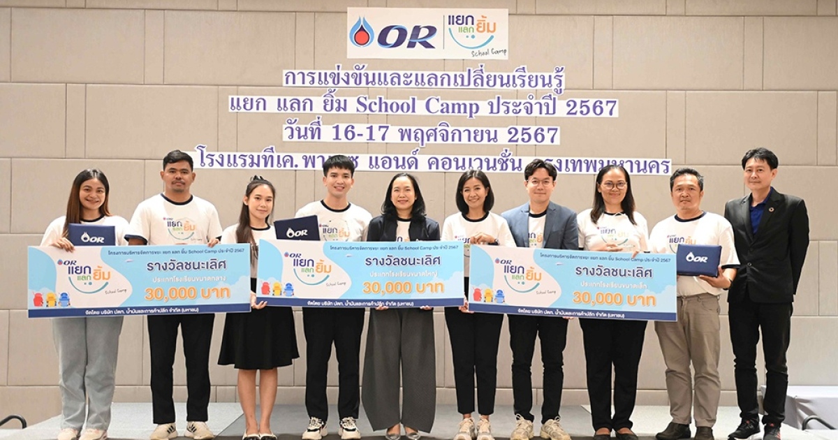 OR ตอกย้ำแนวคิดสังคมสะอาด มอบรางวัลโครงการ “แยก แลก ยิ้ม School Camp ประจำปี 2567” ต่อยอดแนวคิดโรงเรียนปลอดขยะ ลดคาร์บอน สร้างระบบนิเวศสีเขียวอย่างยั่งยืน